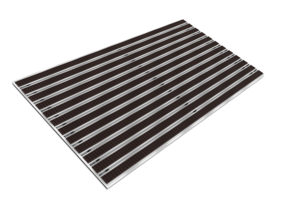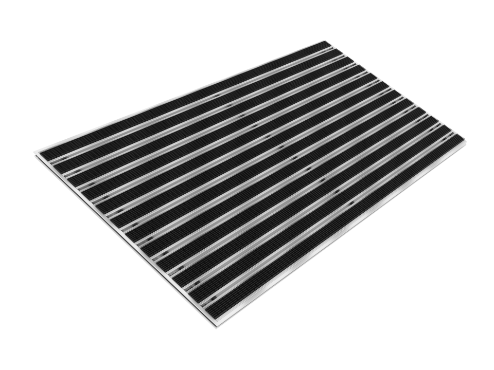 Solutions: Aluminum profile mats, Entrance mats, Clean-run mats, Entrance mats for indoor areas, Floor mat embedded in the floor indoors, Aluminum doormats,